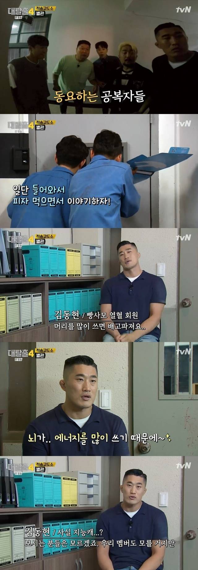 교도소장과 교도관은 피자로 탈출러들을 유인했고, 김동현은 "머리 많이 쓰면 배고파진다. 뇌가 에너지를 많이 쓴다. 보시는 분들 모르겠죠. 멤버들도 모르겠지만 저는 머리를 많이 쓰고 있다"며 피자를 먹었다.