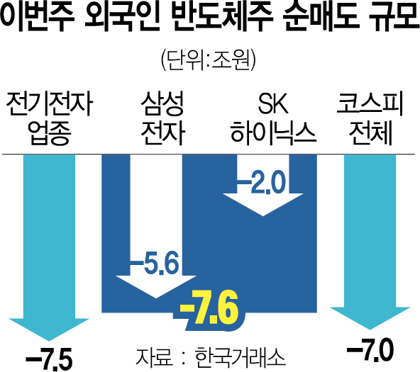 한 주간 외국인 삼성전자·SK하이닉스 7조원 넘게 '패닉셀'