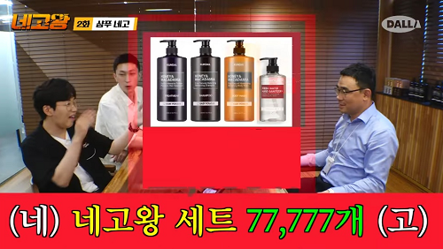 네고왕 계약서 전문의 내용은 방송일 기준 7일간 자사몰에서 샴푸, 트리트먼트, 바디워시 1058ml 6종, 탈모샴푸 1,000ml 단품 구매 시 55% 할인, 1인 5개 한정, 동기간 내 자사몰에서 네고왕 세트 2만2600원에 판매, 총 7만7777개 한정, 동기간 내 자사몰에서 전 제품 20% 할인, 서버 폭파 시 폭파된 이벤트 기간만큼 이벤트 연장 및 손소독제 4444개 기부 의 내용이 포함되어 있다.