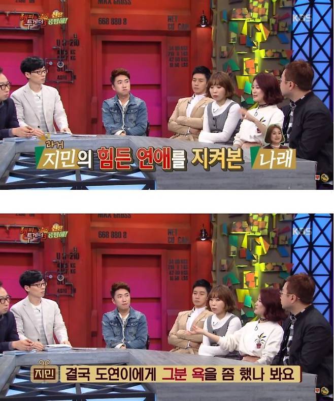 이어 "그래서 도연이한테 그분 욕을 좀 했나 보더라. 나래가 '지민이 언니한테 이렇게 했었다. 별로다'라는 식으로 얘기했더니 도연이가 갑자기 '우리 그 선배 그런 사람 아니야'라고 되게 정색하면서 (유상무를) 감쌌다더라"고 털어놨다.