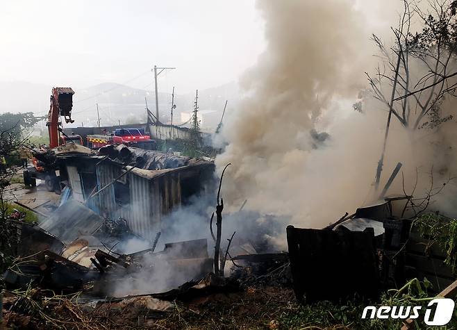 (부천=뉴스1) 정진욱 기자 = 19일 오전 4시 48분쯤 경기 부천시 작동의 한 고물상에 화재가 발생했다.소방당국이 화재를 진압중이다.(경기 부천소방서 제공)2021.8.19/뉴스1