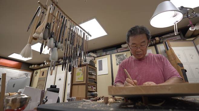 40년간 새겨온 목판화가 몇 개나 되는지 아느냐는 질문에 이철수 화백은 '허허' 웃으며 밥 먹은 시간보다 칼로 나무를 새겨온 시간이 더 많았고 칼로 나무를 새기는 일이 밥 먹는 것보다 더 편하다고 했습니다. 수많은 작품들 가운데 애착이 가는 보물 같은 작품이 있는지를 물었습니다.