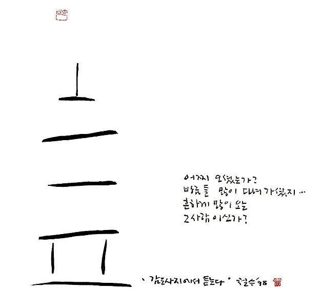 자신의 그림이 동시대를 살아가는 수많은 이들에게 위로가 될 것 같지 않아 아무 얘기나 하지 못하겠고, 선뜻 손이 잘 안 가게 된다는 진정성 어린 고백을 들으면서 '이철수'라는 묵직하고 든든한 버팀목이 동시대를 함께 살고 있어 참 다행이라는 생각을 하게 됩니다.