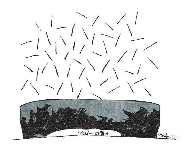 지금도 자꾸 옛날 얘기 묻는 분들이 많아요. 왜 데모 할 때 쓰던 거친 이미지들에서 명상적이거나 성찰적인 그림으로 바뀌었는지를 묻는 분들 여전히 많으시고요. 사실 시위 현장에서 쓰이던 그림 그리던 시기는 한 10년 정도에 지나지 않았는데 그게 강렬했던가 봐요. 그 시기는 그런 거친 이미지들이 필요했던 시기라고 할 수 있는데, 민주주의가 실종되어있던 시기여서 민주주의 회복을 위해 함께 싸우자는 이야기를 해야 하는 시대였으니까 그 그림이 있을 수 있었죠. 저는 젊은 사람이었고.