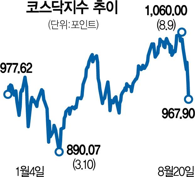 1,000 선이 무너진 코스닥 지수가 연일 2% 이상씩 급락하면서 연초 대비 상승분을 모두 반납했다.