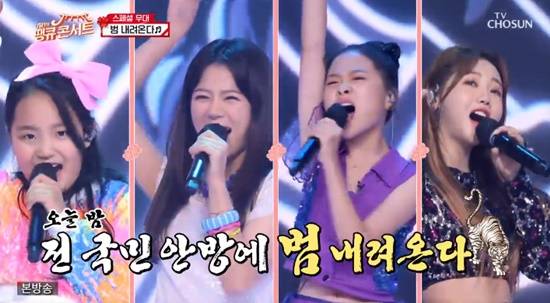 김태연과 김다현은 '잘했군 잘했어' 무대로 포문을 열었다. 이어 스페셜 LED 댄스 퍼포먼스와 함께 '범 내려온다' 무대가 시작됐다. 국악 어벤져스는 '미스트롯2'에서 큰 사랑을 받았던 '범 내려온다'의 재구성으로 시청자들의 이목을 집중시켰다.