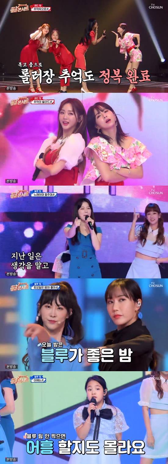 레드 팀은 '추억속으로'로 시작해 '써니', '추억의 발라드', '오직 하나뿐인 그대'로 추억의 무대를 이어갔다. 블루 팀은 '노래하며 춤추며', 'Swing Baby', '토요일은 밤이 좋아', '이제는'을 열창하며 분위기를 뜨겁게 만들었다.