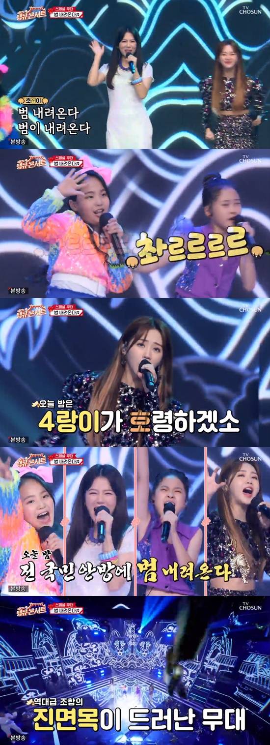 양지은, 홍지윤, 김다현, 김태연은 국악 어벤져스를 결성, '미스트롯2'에서 큰 사랑을 받았던 '범 내려온다' 무대를 재구성했다.