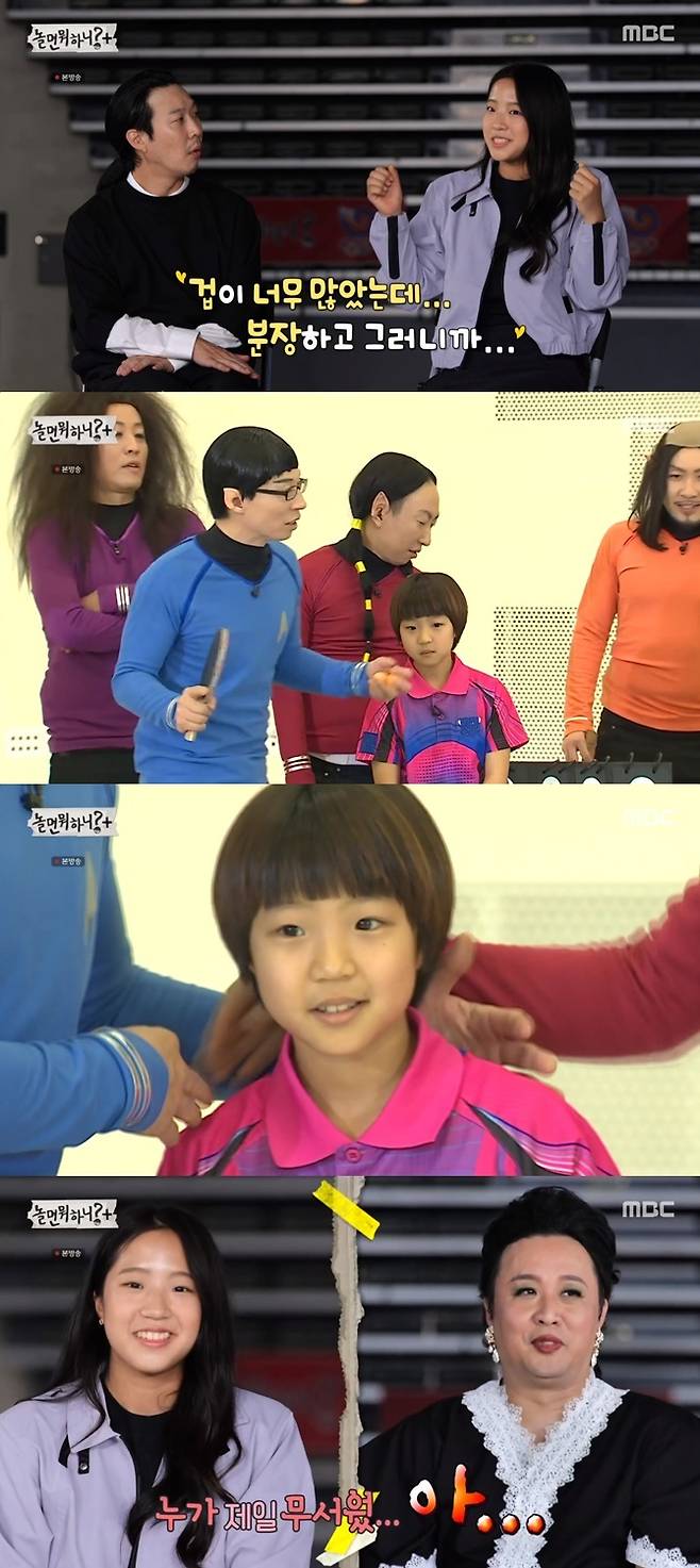 "무한도전 때 기억 나냐"는 질문에 신유빈은 "선명하게 기억난다. 그때 너무 무서웠다. 겁이 너무 많았는데 분장하고 있어서 무서운데 안 무서운 척 참았다"며 웃었다.