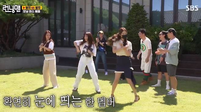 이제 런닝맨들이 나설 차례. 전소민과 송지효가 가세해 SES의 ‘I'm Your Girl’ 퍼포먼스를 선보인 가운데 유재석은 “김종국이 송지효를 무지하게 귀엽게 보더라. 막 깨물 것처럼”이라고 짓궂게 말했다.