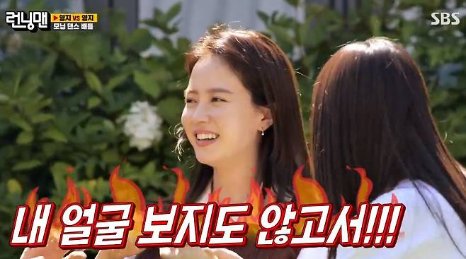 당황한 김종국이 “내 얼굴 보지도 않고서! 나 등지고 있었다”고 소리쳤다면 송지효는 한술 더 떠 “내가 그렇게 귀엽냐?”라고 묻는 것으로 웃음을 자아냈다.