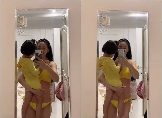 함께 공개한 영상과 사진에는 노란색 비키니를 입은 함소원이 딸 혜정 양을 안고 거울 셀카를 찍고 있는 모습이 담겼다.