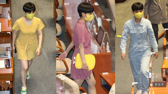 만화 캐릭터를 연상시키는 멜빵바지, 쨍한 보라색 드레스, 노란 운동복까지. 국회 내 파격 의상 중심에는 류호정 의원이 있다.