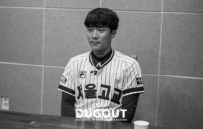 중학교 3학년 때 팔꿈치가 아파서 수술했어요. 그래서 보여줘야 할 때인데 그러지 못했고, 어릴 적부터 서울고 야구부 팀에 가고 싶기도 했거든요. 좋지 못한 상황이었지만, 꿈의 학교에 진학할 수 있어서 행운이라고 한 거예요. 저학년부터 감독님께서 꾸준히 출전할 기회를 주셔서 많이 발전할 수 있었어요.