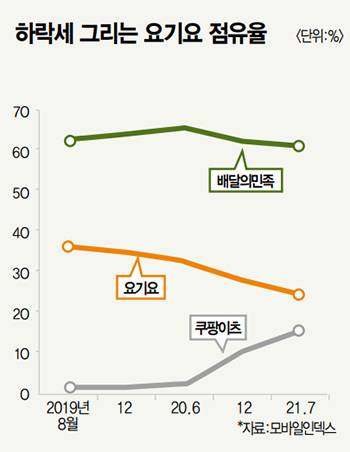 우선 배달 앱 시장에서 요기요의 입지가 어정쩡하다.