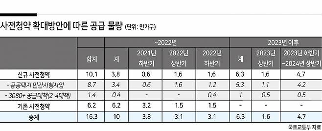 - 사전청약 물량이 10만가구 이상 나오지만 실제 공급이 확대되는 것은 아니다. 이미 공급하기로 했던 물량의 공급 시기를 당기는 효과에 그치는 것 아닌가.