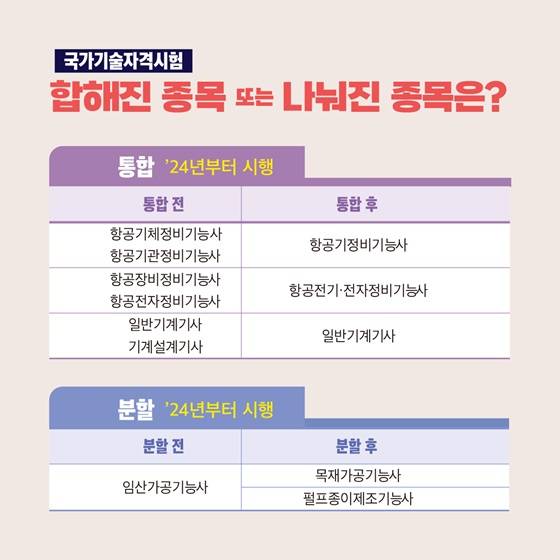 ② 산업현장의 수요를 반영해서 기존 종목은 자격을 합치고, 나누고