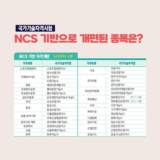 <NCS 기반 자격 개편> ’24년부터 시행