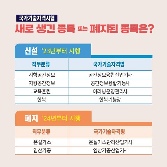 고용노동부는 이 같은 내용을 반영한 「국가기술자격법 시행규칙」 일부 개정령안을 8월 25일(수)부터 시행합니다.