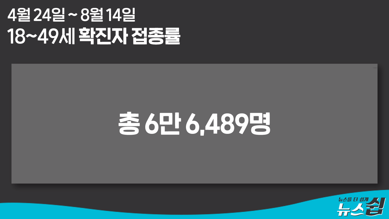 A. 국내 18~49세 연령층에서 접종 완료자가 나온 4월 3일부터 8월 14일까지 해당 연령층 확진자 6만6,489명의 접종력을 살펴보면 93.7%가 미접종자, 4.2%가 1차 접종자, 2.1%가 완전 접종자였다.
