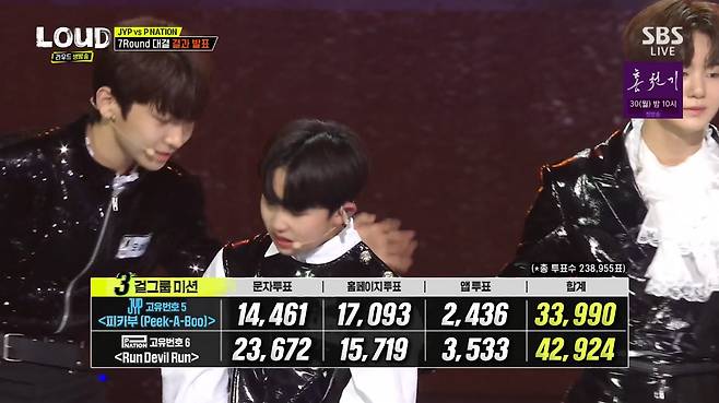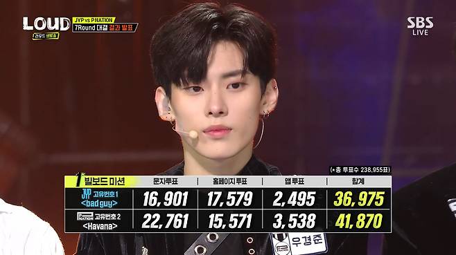 28일 오후 방송된 SBS 'LOUD:라우드'에서는 JYP VS 피네이션 ‘데뷔 서바이벌’ 2라운드 생방송이 진행됐다.