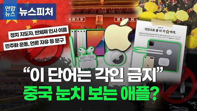지난해 국내 한 유명 유튜버도 '홍콩인들에게 자유를'이란 문구를 애플 제품에 각인하려던 한 소비자가 각인을 거부당한 사례를 소개하기도 했죠.