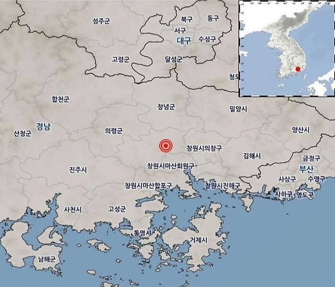 오늘(29일) 오후 1시 3분쯤 경남 함안군 동북동쪽 9km 지역에서 규모 2.2 지진이 발생했습니다.
