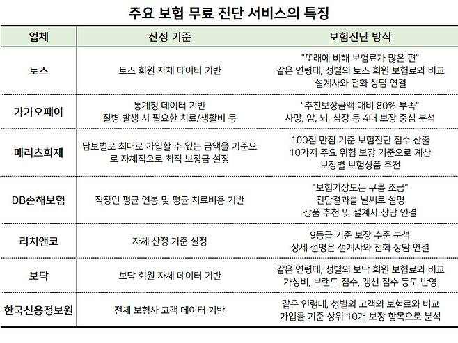 최근 모든 보험사와 보험대리점(GA)은 자체 플랫폼을 통해 이러한 ‘무료 보험 보장분석’ 서비스를 제공 중이다. 기존에는 카카오페이나 토스 등 빅테크·핀테크의 주요 서비스였지만 이젠 업계 전체로 퍼져나갔다. 일부 보험사는 비회원이라도 보험 진단만 하면 선물을 주는 이벤트를 내걸고 있다.