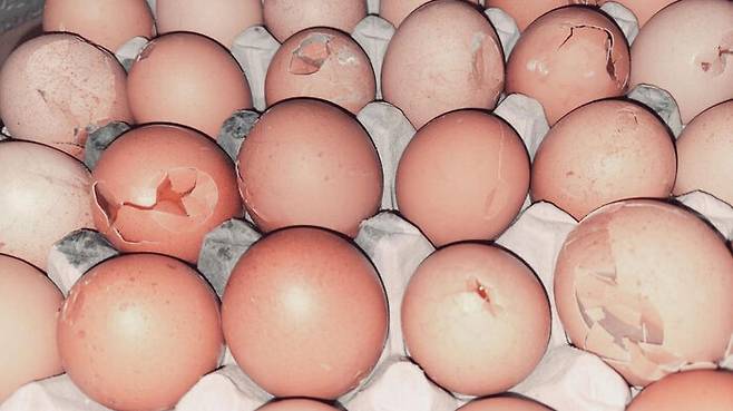 정상유통 계란은 난각(달걀 껍데기)에 산란 일자, 생산자 고유번호, 사육 환경 번호 등이 찍혀 있는데 A 센터가 사용한 계란은 난각에 이러한 표시가 없었습니다.