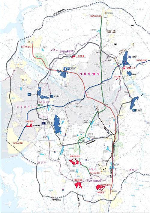 수도권 택지는 기존 2기 신도시가 포진한 서울 남쪽에 집중돼 있고, 큰 택지는 광역급행철도(GTX)와 연계돼 개발되는 것이 특징입니다.
