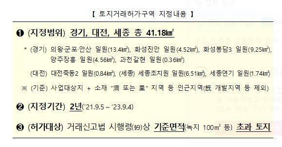 국토부는 신규택지 발표 이후 토지거래허가구역으로 지정되지 않은 지역에서 과열 현상이 나타나면 추가 지정도 검토하기로 했다. 국토부 관계자는 "인근으로 풍선효과가 발생해 집값이 과열될 경우에는 모니터링을 거쳐 추가 지정 여부도 검토할 수 있다"고 밝혔다.