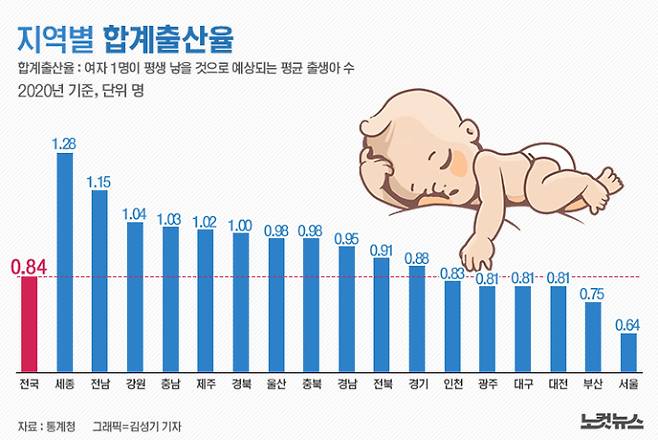 서울을 비롯한 수도권의 합계출산율이 전국 최하위권에 머물고 있다는 사실은 대한민국의 인구 미래가 어둡다는 것을 극명하게 보여준다.