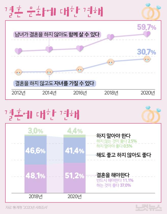 또 심리적으로 결혼에 대한 만족도가 떨어졌다는 것, 경제적으로는 가구소득 감소와 양육·교육비 증가, 주택가격 상승 등이 꼽힌다.