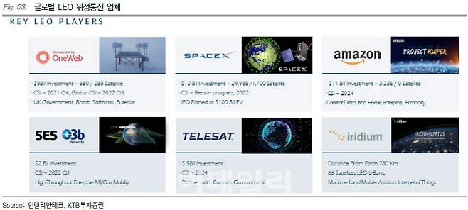 김재윤 KTB투자증권 연구원은 "인텔리안테크는 스페이스X 외 5개 저궤도(LEO) 사업자(원웹, 아마존, SES, TELESAT, Iridium)와 안테나 공급을 논의중"이라며 "예상보다 빠르고 많은 LEO 물량에 대응해 추가 증설을 진행할 것"이라고 말했다.