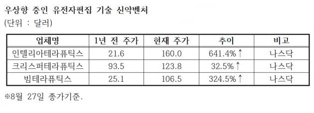 유전자치료제 업체들에 대한 눈높이도 높아졌다. 투자업계나 글로벌 제약사가 유전자가위 기술을 보유한 벤처기업에 보내는 ‘러브콜’이 계속되고 있다.