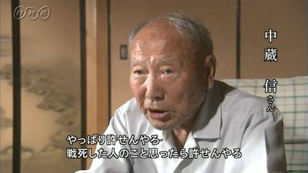 | ▲ 밀리 환초의 참상을 증언하는 나카쿠라 씨(2009년) "역시 용서 못해. 전사한 사람을 생각하면 용서 못하지. 왜 그런 곳에 가지 않으면 안되었나. 집에 있었다면 지금도 살아있었을텐데. 좋은 일이 된다고, 나라를 위해 복무할 수 있다고 밀리 환초에 갔던 게 정말 나라를 위한 것이었나. 그런 건 전쟁이라고도 할 수 없어. 기아지옥이지." |