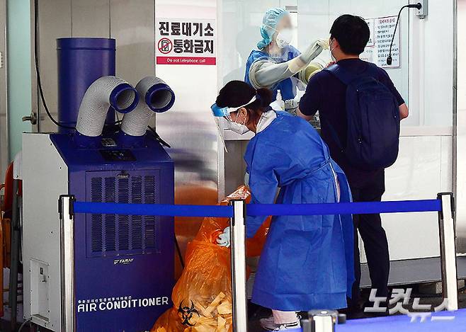 보건의료노조가 정부와의 노정교섭 타결로 총파업을 철회한 2일 오전 서울 강서구보건소에 마련된 선별진료소에서 의료진들이 분주하게 움직이고 있다. 보건의료노조의 파업으로 우려됐던 의료공백과 현장에서의 혼란도 피할 수 있게 됐다. 황진환 기자