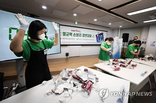 대회는 종이팩의 올바른 분리 배출법과 재활용 가능한 자원임을 시민들에게 알리기 위해 개최됐다. 2021.9.6