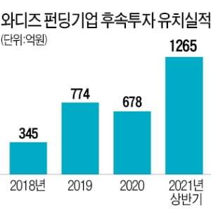 올해 상반기 와디즈 펀딩 기업의 후속 투자 규모는 1265억원에 달했다. 지난해 같은 기간보다 2.8배 이상 증가했다. 와디즈 관계자는 “코로나19 사태 이후 정보통신기술(ICT) 스타트업 위주로 일고 있는 제2 벤처붐 현상이 크라우드펀딩으로 성장 가능성을 검증받은 와디즈 펀딩 기업에 대한 기관투자로 이어지고 있다”고 설명했다.