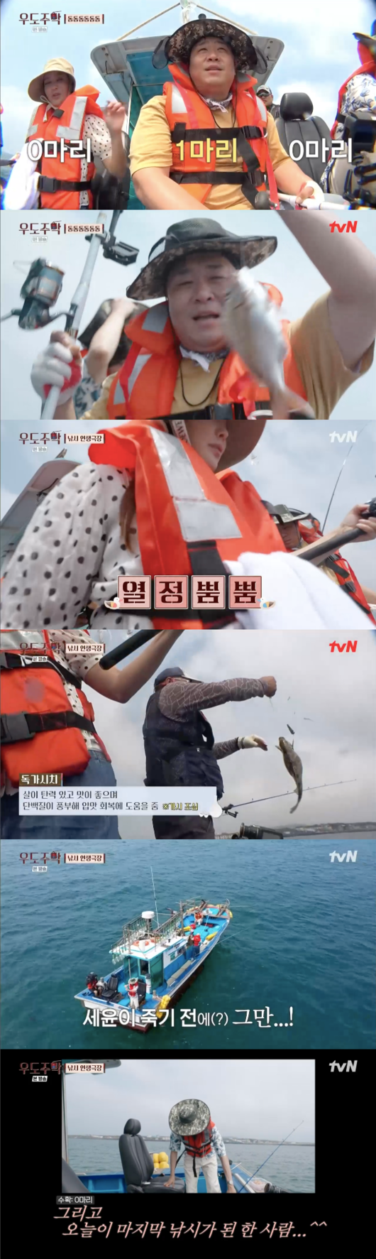 40cm가량의 참돔을 낚은 문세윤은 “대박”이라며 기뻐했다. 이에 카이는 “형 장난 아니다”라며 부러움을 드러냈다. 문세윤은 카이와 김희선에게 “우리 후배들 잘 낚고 있냐”며 허세를 부렸고 김희선은 “태어나서 두 번째 낚시인데 저도 좀 잡게 해주세요. 용왕님”이라며 간절한 마음을 드러냈다.