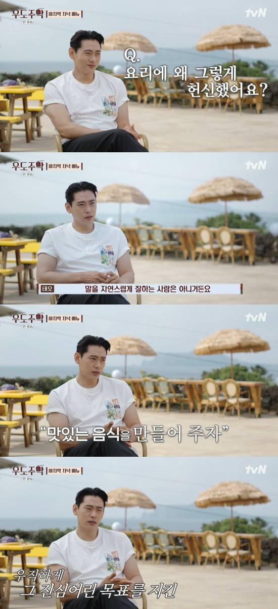제작진은 유태오가 요리에 헌신하는 이유가 무엇 때문인지 궁금해했고, 유태오는 "사실 제가 이야기를 자연스럽게 잘하는 사람은 아니다. 수줍어하고 그런 게 있다. 맛있는 음식을 만들어 줘야 된다는 그런 것들이 제일 신경을 많이 썼었던 것 같다. '진짜로 잘 내드려야 되겠다' 그런 생각이 많았다. 고민도 많았고"라며 고백했다.