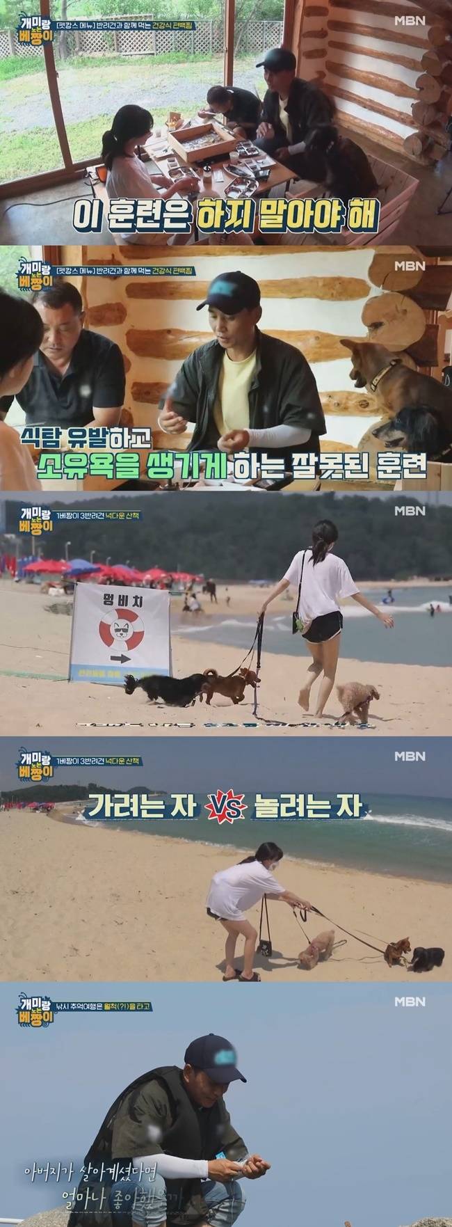 세 사람의 여행은 사람보다는 반려견에 초점을 맞춰 시선을 끌었다. 이날 점심 메뉴는 반려견과 함께 먹을 수 있는 건강식 편백찜. 사람은 소스를 찍어 먹고 강아지는 그냥 먹으면 되는 기발한 메뉴로 세 사람과 세 반려견의 마음을 모두 사로잡았다.