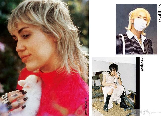 한국에서는 위너의 송민호·BTS 등 힙한 남자 아이돌들이 멀릿 헤어의 귀환을 알렸고, 마일리 사이러스·리한나 등 글로벌 셀렙들은 자신만의 감각을 더해 개성 있게 소화한 멀릿 헤어를 선보였다. 카멀라 해리스 미국 부통령의 딸인 모델 엘라 엠호프의 경우 컬을 강조한 멀릿 헤어로 귀여움을 실어 눈길을 끌었으며 이번 시즌 페라가모, 막스마라, 디올 등 다양한 컬렉션에서 모습을 드러낸 모델 최소라는 짧은 앞머리와 층이 많은 뒷머리로 시크한 느낌을 배가한 그녀만의 멀릿 헤어를 연출했다. 이렇듯 남자들이 즐기던 헤어스타일이 젠더리스하고 트렌디한 스타일로 승화되며 최근 남녀노소에게 큰 호응을 얻고 있는 중. 특히 길이와 텍스처, 앞머리 연출, 펌 등 디테일을 어떻게 더하는가에 따라 다양한 분위기를 낼 수 있는 것이 멀릿 헤어의 장점이다. 프리랜서 헤어 아티스트 권도연 실장은 "호불호가 강한 만큼 트렌디한 패션과 매칭했을 때 개성을 극대화할 수 있는 스타일"이라며 "대체로 둥근 얼굴형보단 긴 얼굴형에 어울리고, 다운 펌을 통해 헤어 볼륨을 조금 누르면 더욱 시크하게 멀릿 헤어를 소화할 수 있다"고 조언한다. 이번 F/W 시즌 트렌드인 얼티밋 그레이, 레이드 블루, 블론드 등 컬러를 더하는 것도 방법. 엘라 엠호프처럼 컬이 탱글탱글한 펌을 했다면 크림과 에센스를 섞어 스타일링하고, 슬릭한 헤어를 선호한다면 에센스와 왁스를 섞어 바를 것. 하루 종일 원하는 헤어스타일로 유지할 수 있다.