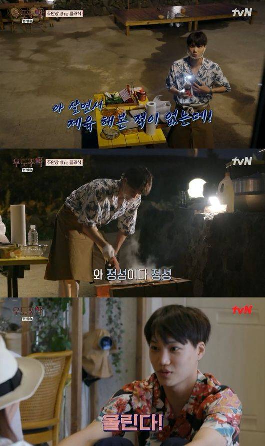 그룹 엑소 멤버 카이(에스엠엔터테인먼트 소속)가 '우도주막'의 에이스 막내로 활약하며 믿고 보는 예능 캐릭터임을 증명했다.