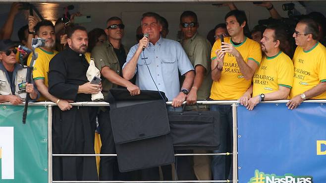 보우소나루 대통령은 시위대 집회에 참석해 "헌법에 규정된 권한을 넘어서 행동하는 사람들에게 물러날 것을 요구할 수 있다"며 대법원에 대한 불복종을 촉구했습니다.