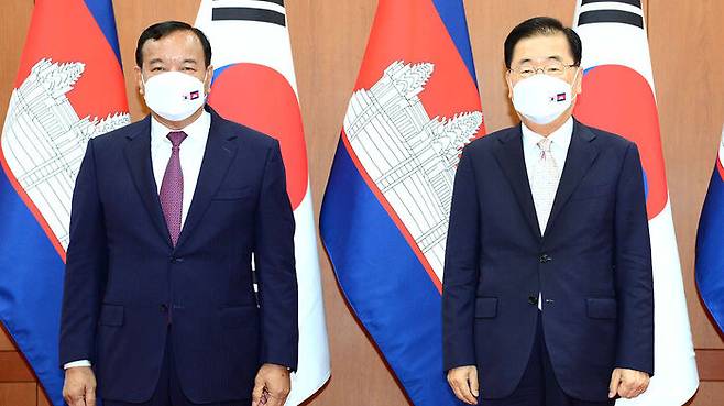 정의용 외교부 장관은 오늘(8일) 방한 중인 쁘락 소콘 캄보디아 부총리 겸 외교장관과 회담을 하고 양국 협력방안과 주요 지역·국제정세를 논의했다고 외교부가 밝혔습니다.