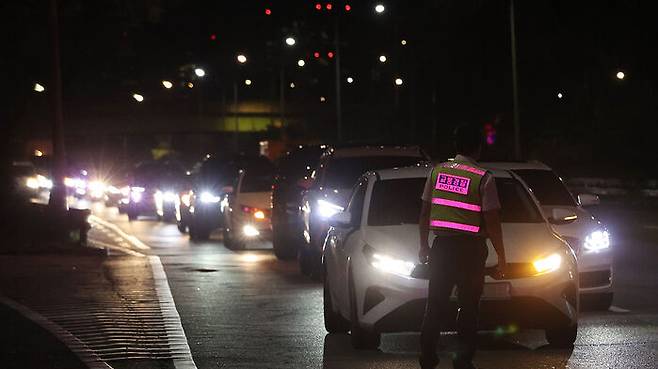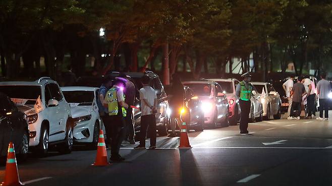 서울 올림픽대로에서 검문검색을 하고 있는 경찰