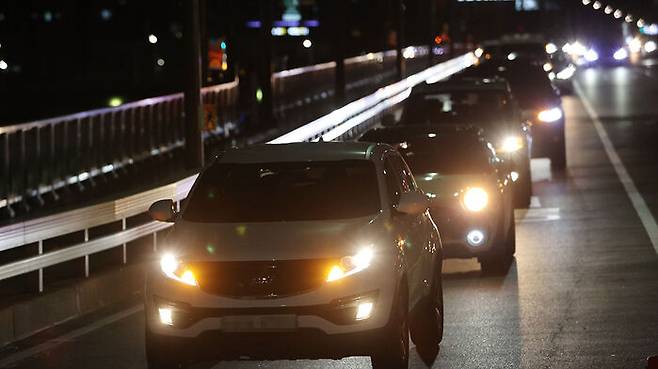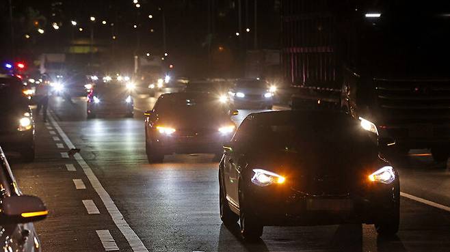 서울 올림픽대로 차량 시위 모습