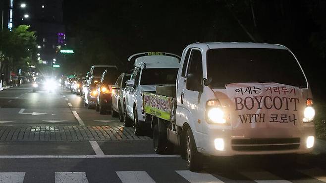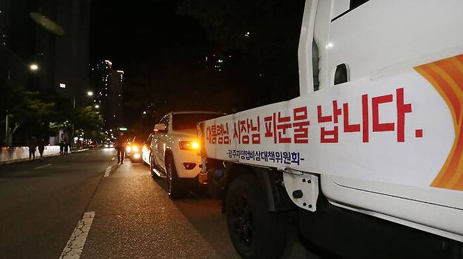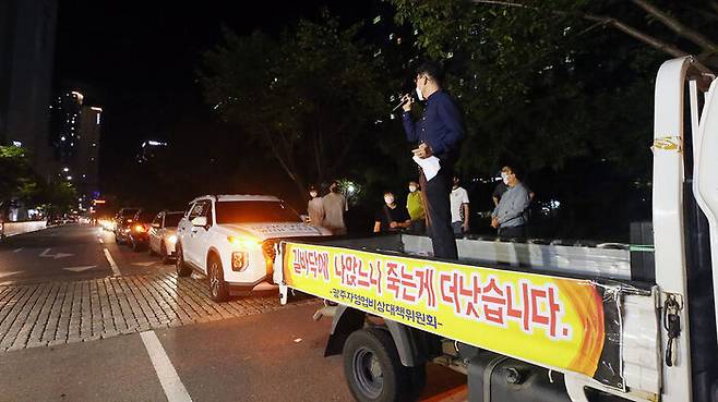 광주 지역 자영업자들의 시위 모습