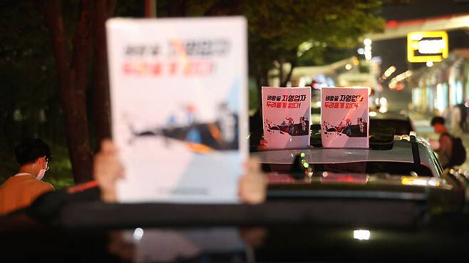 [포토] '벼랑 끝, 두려울 게 없다'..비상등 켜고 심야 시위